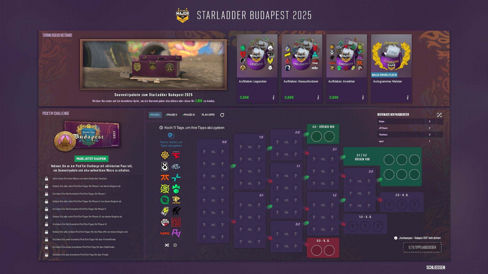As for every major, you can buy a Viewer Pass to get access to an upgradable Budapest 2025 Coin. With an active pass, you can upgrade your coin by completing Pick’Em Challenges and earn extra souvenir packages along the way.